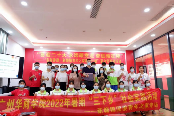 2022年7月19日,威廉希尔williamhill中文校级学生组织党总支“强国复兴有我队”实践团在广州市增城区新塘镇组织开展2022年暑假“三下乡”社会实践活动,旨在引导和帮助青年学生上好社会实践的“思政课”,在社会实践中“受教育、长才干、做贡献”。