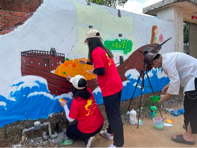 其中,最值得一提的是,队员们手绘当地文化墙,为徐闻添上浓墨重彩的一笔。他们将绘画的主题定为“菠萝少女”。手绘工程量巨大,但是队员们以饱满的热情,经过几天的努力,最终完成主体墙绘。华商学子们用画笔,描绘乡村振兴最美画卷,点亮乡村一角,村民们对此赞叹不已。此举被中国共青团杂志、创青春、广东共青团、广东学联、广州日报、网易新闻、羊城晚报、新浪财经、澎湃新闻、徐闻县政府网等多家媒体报道。