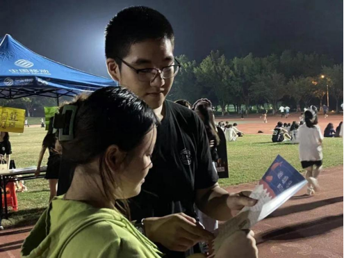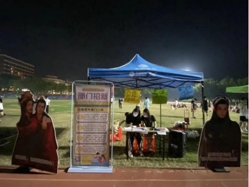 工作人员们早早地赶往四会摊点布置现场,把良好的精神面貌展现给22级新生,让他们感受到我们的真诚与活跃。