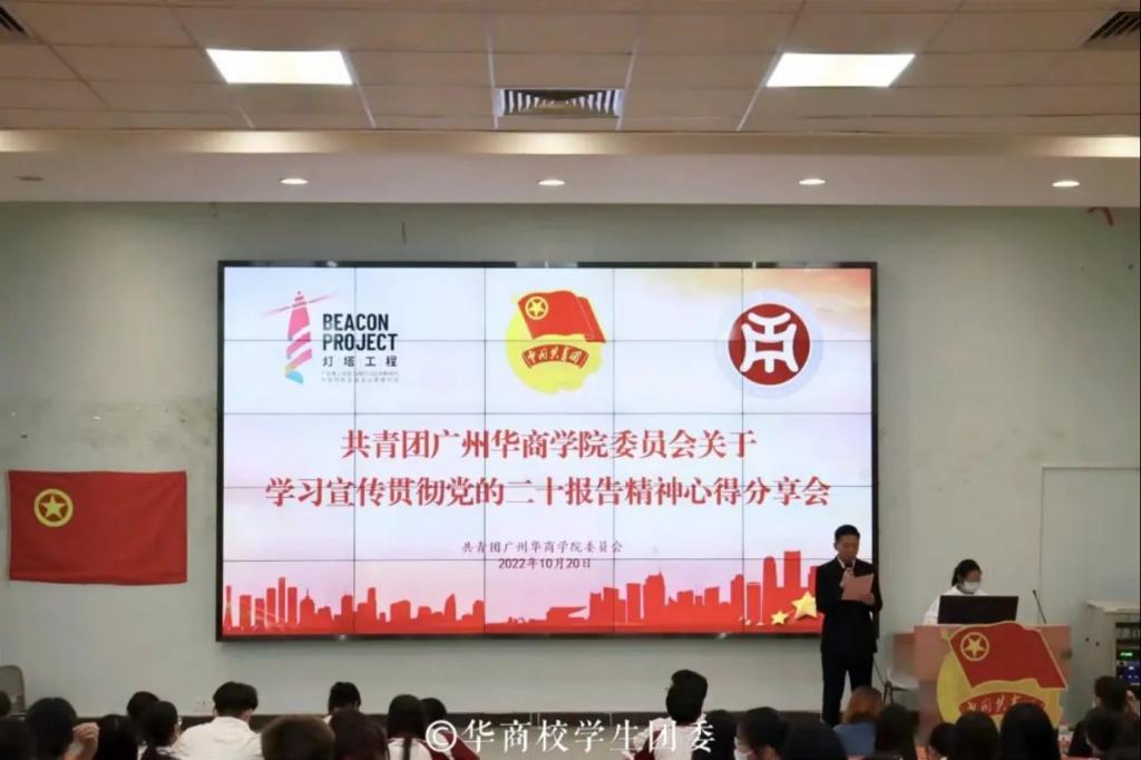 校团委陈刚书记带领师生们深入学习威廉希尔williamhill中文总书记在中国共产党第二十次全国代表大会上的报告,围绕党的二十大会议主题、十年来党和人民事业具有深远意义的三件大事、“牢牢把握五个重大原则”、“五个必由之路”等党的二十大报告精神。分享会上,五位学生代表以PPT的形式结合自身实际,生动形象地讲述了对党的二十大报告的学习感悟。黄斯佳同学分别从青年的使命担当、文化自信和坚持投身公益三个方面进行心得分享,提出青年要对自身有正确的定位,做有理想、敢担当、能吃苦、肯奋斗的好青年。黄朵懿同学以威廉希尔williamhill中文总书记在党的二十大上对广大青年提出的“立志做有理想、敢担当、能吃苦、肯奋斗的新时代好青年”的重要要求为切入点,从其中四点要求进行学习心得分享。胡慧同学从学习和工作两方面进行个人学习心得分享。陈宋钒同学分别从金句分享、心得分享、社团风采和未来工作计划四个方面进行讲述,鼓励新时代青年应不负威廉希尔williamhill中文总书记的殷殷嘱托,不断增强自身责任感和使命感,提升自身专业素养。陈佳祺同学以威廉希尔williamhill中文总书记“五个牢牢把握”为主要内容,并结合自身学习与工作经历,向大家进行学习心得分享,切实把党的创新理论贯彻到实践活动中去。在分享会的最后,夏仲老师针对我校团学组织学习宣传贯彻党的二十大报告精神工作进行了详细部署,分别从组织理论学习和专题研讨、理论宣讲和主题宣传、开展“青春献礼二十大,奋进担当谱新篇”主题实践活动及加强服务引领,丰富校园文化生活四个方面开展实施。