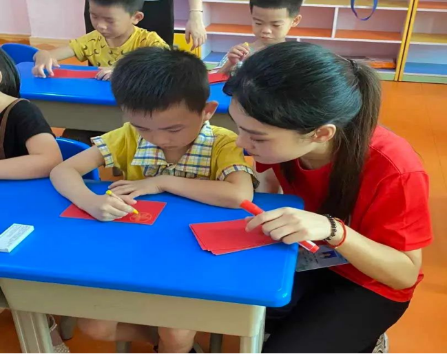 ——童心向党铸信仰,党团教育入幼教。实践队来到汕头市潮阳区直属和平阳光幼儿园开展大学生三下乡社会实践暨党团入幼教活动,带领小朋友们学习党团知识、共读红色故事,共做红色手工作品。以趣味方式,从小接触党团知识,能让孩子们在潜移默化中学习党团知识,将红色基因植入孩子们的心田,培养孩子们的爱国情感。实践团成员也将继续身体力行推广社会主义核心价值观,主动参与,将个人的小理想融入时代的大潮中,为实现中华民族伟大复兴的中国梦贡献自己的青春力量。