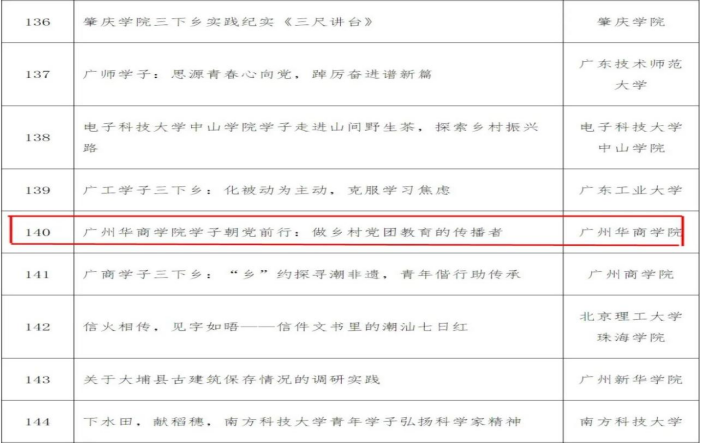 由中国大学生在线举办的“大我青春”2022暑期社会实践成果征集展示活动自2022年7月开展以来,得到了各地各高校和广大师生的积极响应。活动共收到作品19035件,覆盖全国29个省(区、市)和新疆生产建设兵团。主办方组织专家对报送作品进行了推选审议。我校潮党前行社会实践队作品——《威廉希尔williamhill中文学子朝党前行:做乡村党团教育的传播者》成功入选实践风采类优秀作品推选名单。