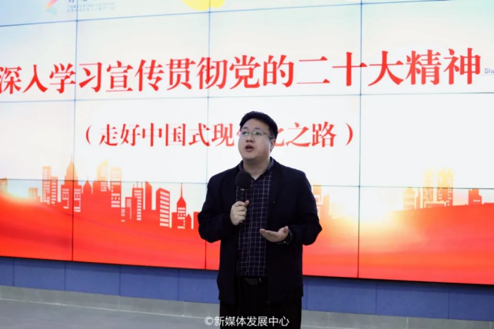 陈刚书记带领全体参会人员从理解走好中国式现代化这一角度深入学习党的二十大精神。陈书记强调,党的二十大擘画了以中国式现代化全面推进中华民族伟大复兴的宏伟蓝图。而中国式现代化,是中国共产党领导的社会主义现代化,其内涵丰富、思想深刻,是中国共产党带领中国人民开创的现代化新路,是通向成功的最新方向和路径。中国式现代化方案具有重大理论价值和实践指导意义,广大团员青年要继续在日常学习和工作中深入学习领悟,深化思想认识。