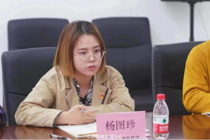 杨图珍老师分享了新时代共青团宣传思想文化工作4个关键词,分别是:思想引领、媒体阵地、优质产品以及队伍建设。我们共青团干部要牢牢抓住为党育人主责主业,紧紧围绕学习宣传贯彻党的二十大这条主线,把加强青年思想引领作为切入口,强化青年思想道德建设,守正创新,做好新时代的共青团宣传思想文化工作。推出优质文化产品,主动贴近青年、引领青年、服务青年,推进建设政治坚定、充满活力、触手可及的“网上共青团”,筑牢网络思政阵地。
