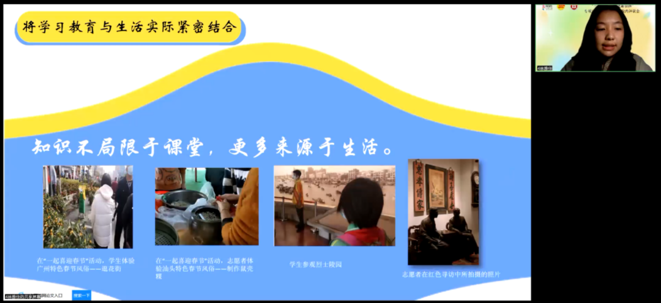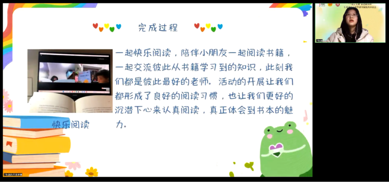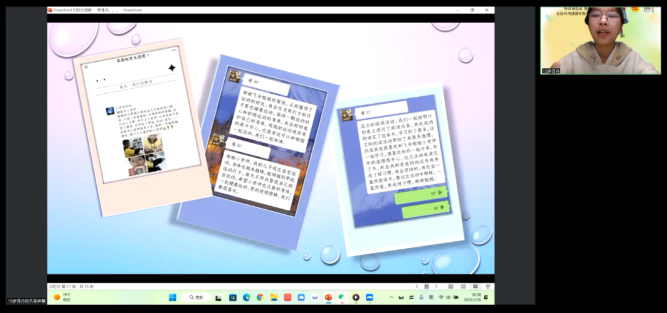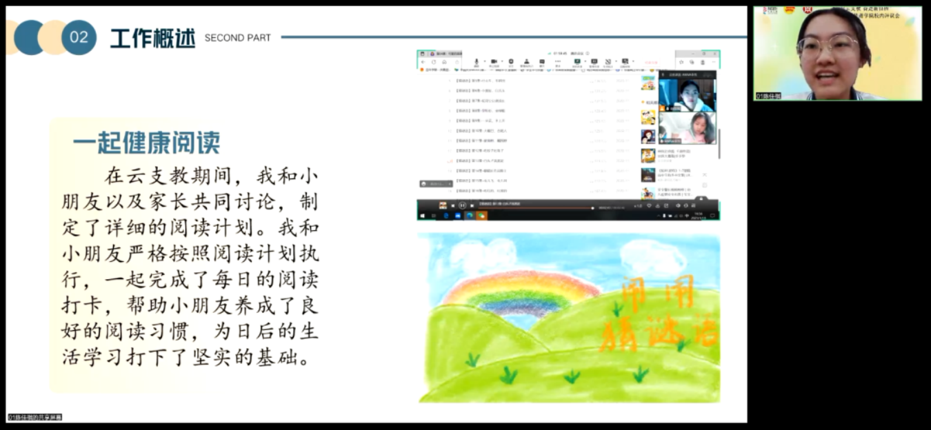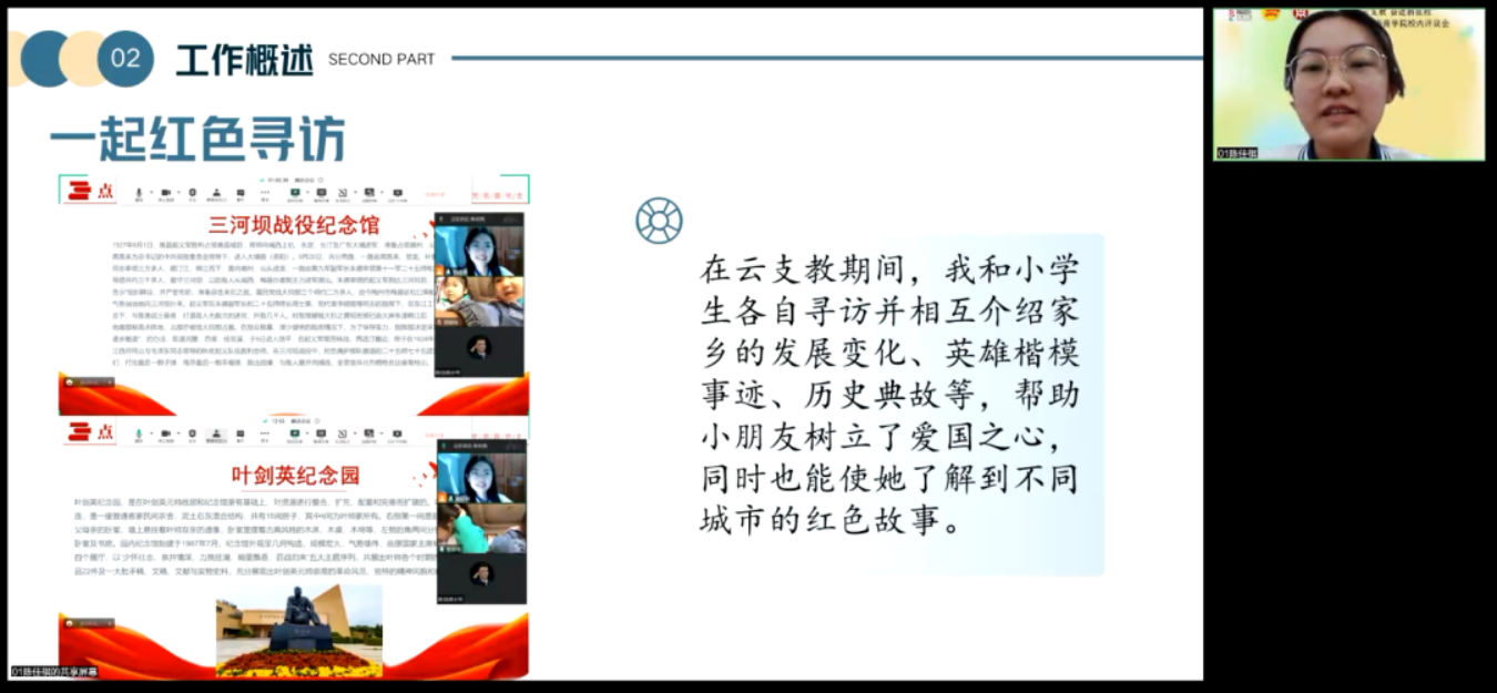 评议会上,“一起云支教”的学生志愿者们依次分享他们在云支教过程中和中小学生的美好瞬间、遇到的问题及收获与成长。在云支教的活动载体中以及家长们的积极配合下,学生志愿者们传授知识、传递正能量,在实践中运用专业,收获了感动和成长;孩子们收获了知识和力量。一起云支教“返家乡”社会实践活动架起大学生志愿者和小朋友的沟通桥梁,志愿者们用爱心浇灌,与小朋友们结下深厚情谊,共同成长进步。跨越山海,云端相逢,心与心相依,成为彼此的大树。