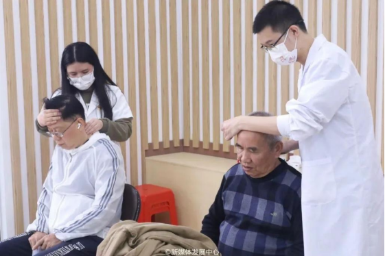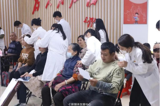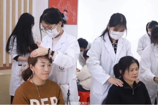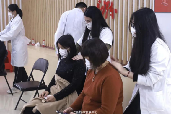 本次志愿服务活动包括量血压、中医推拿及健康养生咨询等内容。华商青年志愿者们热情接待来访的村民,与他们进行深度交流。推拿区,学生志愿者们在为村民们按摩推拿过程中,亲切耐心地为大家讲解常见的头痛、颈椎痛的基本按摩穴位和方法,教大家如何找到风池穴、肩中穴等穴位,并教大家日常治疗肩颈痛、背痛的小技巧。