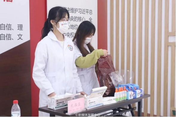 此外,学生志愿者们还积极宣传健康生活小常识,叮嘱来访村民养成健康的生活方式和生活习惯,并送上中药艾草香囊、驱蚊液、消毒湿纸巾等小礼品。短短三小时,学生志愿者们用爱心和细心,为村民们提供中医特色健康服务,受到村民们一致的欢迎和赞扬。