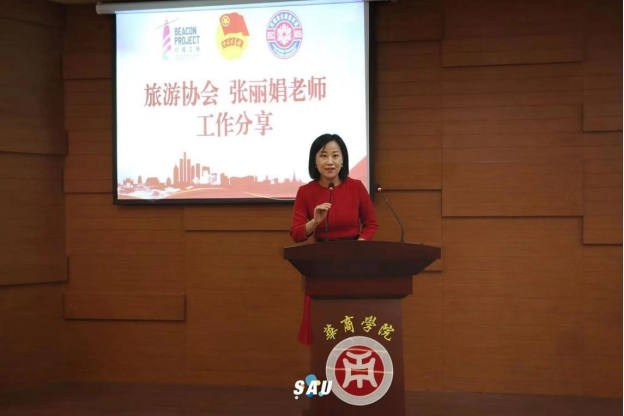 旅游协会张丽娟老师进行工作分享。张老师表示,高校学生社团突破专业局限,是由来自不同学科、专业背景,因为兴趣爱好相同学生建立起来的学生组织。同学们以此为平台进行交流和经验分享。社团指导老师们应该站在促进学科交叉和专业建设的思维视角审视学生社团指导工作,利用自身专业资源应帮助学生社团专业和品牌建设,动员社团成员们打磨项目,积极参加各类竞赛,提升同学们创业创新能力,助力学生“弯道超车”、促进协会发展,探索以赛促教、促学的思路,在过程中增强集体归属感和荣誉感。她鼓励同学们培养甘于奉献担当、坚韧不拔的品格和友善、自信和乎知的心态,迎接挑战,以一种“大格局”的心胸促进学校学生社团事业发展,助力校园文化发展!