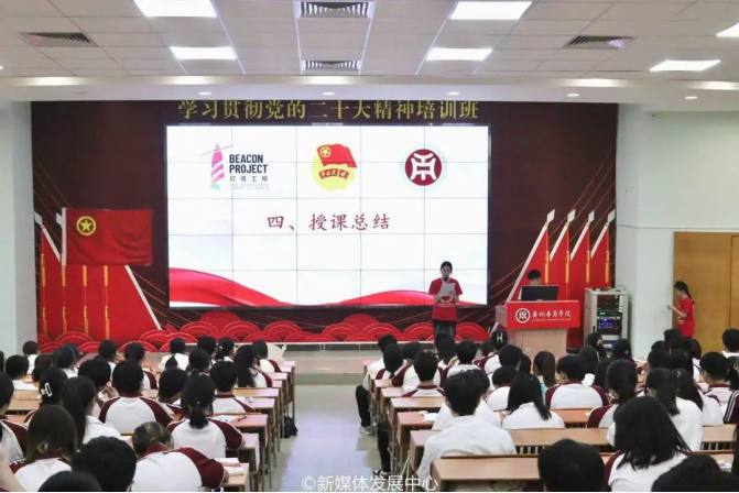 ——授课总结。小组汇报完毕后,校学生团委组织部和团员教育发展部负责人上台进行授课总结,并介绍了关于入团积极分子入团考核的考试形式等相关事宜。