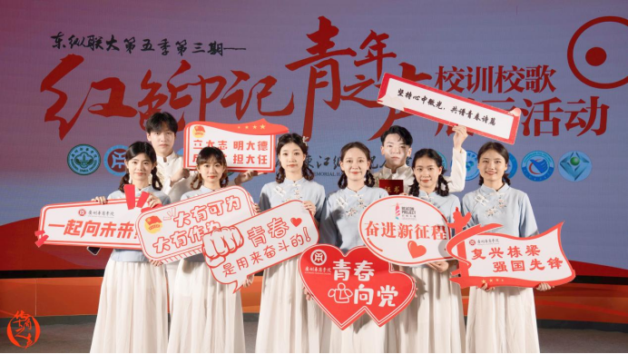 雅言传承精神,经典浸润思想。我校华商之声广播电视台学生代表参加“东纵联大”第五季第三期“红色印记 青年之声”校训校歌展示活动。同学们声情并茂,慷慨激昂,带来朗诵节目《星火青年》。“厚德、励志、博学、创新!奔涌吧,华商青年们。让青春在为人民,为民族,为祖国,为人类的不懈奋斗中绚丽绽放。”他们以朗诵传递华商校训,借表演诠释时代精神,展现华商青年向上精神风貌,张扬青春风采,表达传承革命薪火、把青春播撒在实现民族复兴的中国梦征程上的决心和行动。