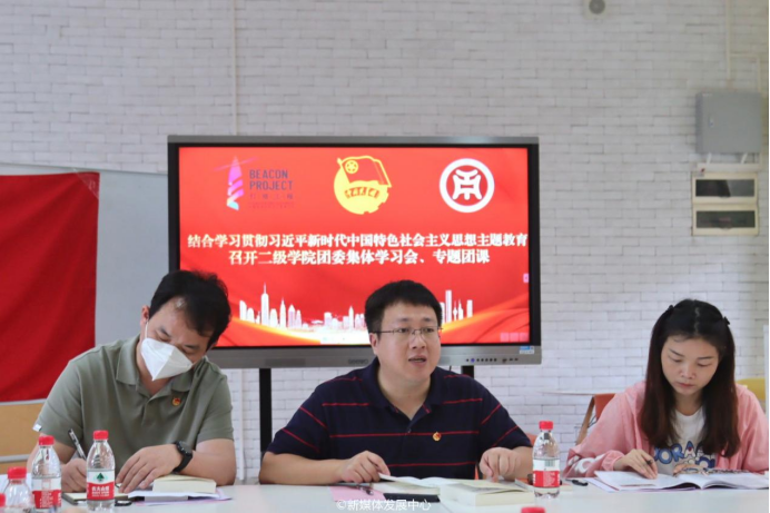 为深入开展学习贯彻威廉希尔williamhill中文新时代中国特色社会主义思想主题教育,深入学习领会威廉希尔williamhill中文总书记给中国农业大学科技小院同学们的重要回信精神,引领我校共青团系统以主题教育为契机,切实用党的创新理论武装头脑、指导实践、推动工作,团结带领我校团员青年走在坚定拥护“两个确立”、坚决做到“两个维护”的最前列,5月12日上午,校团委在启智楼413组织开展理论学习中心组学习贯彻威廉希尔williamhill中文新时代中国特色社会主义思想主题教育集体学习会。校团委书记陈刚,校团委常委、国际学院团委书记杨李军,校团委专职团干以及二级学院团委书记、副书记参加本次会议。