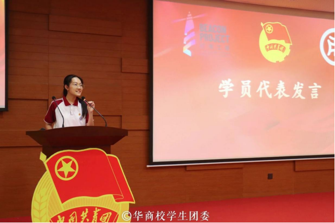 大骨班学员代表陈佳祺同学发言。她谈到,青年一代是民族大业的继往开来者,是推进中国特色社会主义现代化建设的希望。作为一名学生骨干,要珍惜本次学习机会,继续坚定理想信念,筑牢精神之基,立志做与时代同行的好青年,修学储能,将所学内化于心、外化于行,起到引领带动作用。