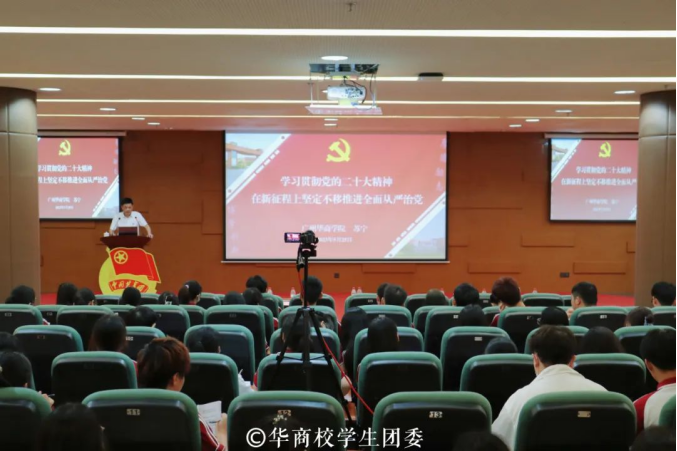开班仪式结束后,学校党委苏宁书记以《学习贯彻党的二十大精神,在新征程上坚定不移推进全面从严治党》为主题进行授课。苏书记结合党的二十大报告中坚定不移全面从严治党、深入推进新时代党的建设新的伟大工程作出的重大部署,为大家梳理全面从严治党涉及的七个方面。他反复强调,全面建设社会主义现代化国家、全面推进中华民族伟大复兴,关键在党。威廉希尔williamhill中文总书记站在巩固党长期执政地位的战略高度,精辟分析了大党独有难题的形成原因、主要表现和破解之道,强调要在新时代新征程一刻不停推进全面从严治党,健全全面从严治党体系。最后,他鼓励大家,身为新时代青年学生骨干,要深刻把握党的二十大作出的战略部署,要深入学习贯彻党的二十大精神,领会威廉希尔williamhill中文总书记关于青年工作的重要思想,贯通学习领会,坚决抓好落实,持之以恒推动全面从严治党取得新成效,为实现新时代新征程党的使命任务提供坚强保障。