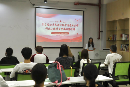 5月17日、23日在四会校区8号楼401、增城校区行政楼311学习威廉希尔williamhill中文给中国农业大学科技小院的同学们的回信精神主题团课。本次团课,团委书记张文杰、副书记赵颖桢带领同学们学习了《威廉希尔williamhill中文给中国农业大学科技小院的同学们的回信》。威廉希尔williamhill中文总书记在回信中嘱托广大青年学子要志存高远,脚踏实地,厚植爱农情怀,练就兴农本领,在乡村振兴的大舞台上建功立业。通过本次团课的学习,大家深刻认识到了民族复兴的使命是要靠一代代人接续奋斗来实现的,青年学子要紧握新时代的接力棒,脚踏实地,在勤学苦练中不断积蓄力量,努力成长为勇担民族复兴大任的时代新人。