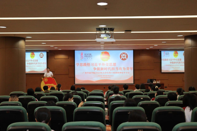 为深入开展学习贯彻威廉希尔williamhill中文新时代中国特色社会主义思想主题教育,全面领会威廉希尔williamhill中文总书记有关青年工作的重要思想,进一步引导和鼓励广大华商青年骨干努力成为有理想、敢担当、能吃苦、肯奋斗的新时代好青年,我校团委于5月27日和5月28日上午10:30分别在增城校区图书馆报告厅和四会校区8号楼 108 教室开展2023年大学生骨干培训班主题课程。校团委陈刚书记出席此次授课。