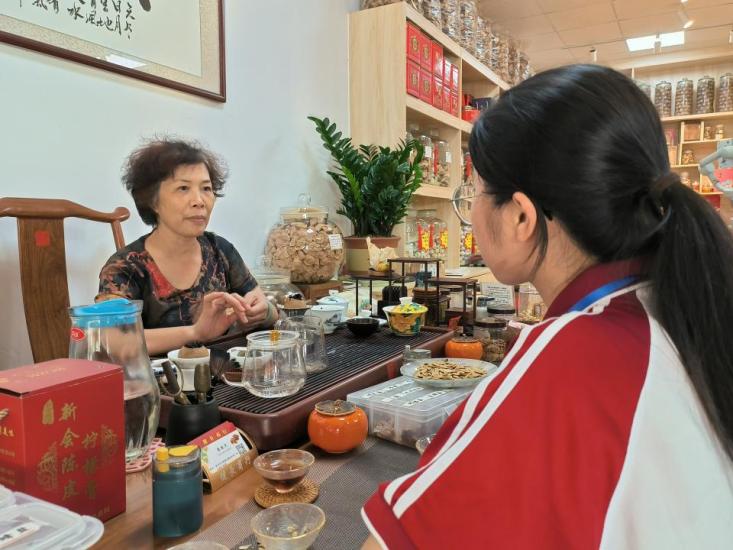 下午,我们团队去了两个地方分别为梁启超故居以及陈皮村。我们首先去参观了梁启超故居,在参观过程中不禁为梁启超先生的奋斗精神所感动,梁启超先生不仅仅是革新的先锋人物,也是良好家风的代表,先生的“少年中国说”始终激励着我们每一位学子。之后我们团队来到陈皮村调研,来了解当地的陈皮炮制技艺,了解制作过程。我们还随机采访了当地一位陈皮制作商家,他给我们讲了陈皮制作的多道工序,还像我们展示了柑茶的冲泡技巧以及注意事项,这让我们对新会陈皮非遗文化有了更近一步的了解。