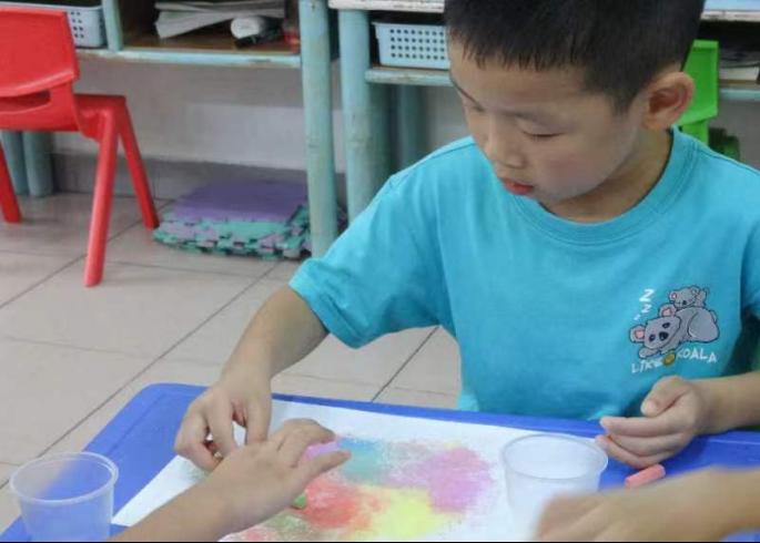 第三天的大一班和大三班的营养均衡课分别由团队成员郭文欣以及林嘉莹来上,他们都讲了营养均衡对小朋友们的重要性,告诉他们在日常生活中要合理的营养搭配,还给小朋友们讲了营养均衡所带来的危害,在课堂的最后通过捏橡皮泥的方式,让小朋友们捏出自己喜欢的食物,之后展示进行成果展示;天文教育课分别由我们的团队成员邓楚香和杨桦来上,在课上他们带领小朋友们认识宇宙中存在的星球以及我国航空航天事业的发展,还让他们对宇航员上太空如何生活做一定的讲解,激发小朋友们的好奇心和兴趣,讲完课后队员们让小朋友们进行绘画,绘画出自己心目中的星球,最后进行成果展示。大二班的礼仪知识教育课和垃圾分类课分别由团队成员肖镱桢和陈妤湘来上,首先在礼仪知识教育课上,肖镱桢给小朋友们讲解日常的礼貌用语以及如何在不同情境中说礼貌用语,同样通过情景演绎的方式,生动形象的展现给小朋友,让小朋友们更加明白在日常生活中讲礼仪的重要性;第二节课是垃圾分类课,首先带小朋友们认识垃圾有几大类可分,之后带领他们辨认什么垃圾应该归为哪一类,跟他们讲解清楚后,通过小游戏的方式,用垃圾卡片来让他们自己归类,这样他们既能够玩到游戏,又能够掌握垃圾分类的知识。