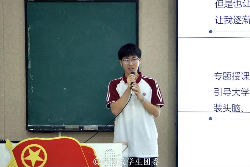 ——优秀学员竞选。各竞选学员上台演讲,述说在大学生骨干培训班的学习历程和学习感悟,以及在假期生活中参加社会实践的经历,展现青春独特的风采。在进行学习和社会实践的过程中,大学生骨干们坚定不移听党话、跟党走。学习党的科学理论,践行党的初心使命,感悟党的优良作风,将人生理想融入国家和民族事业当中,努力成为担当民族复兴大任的时代新人。