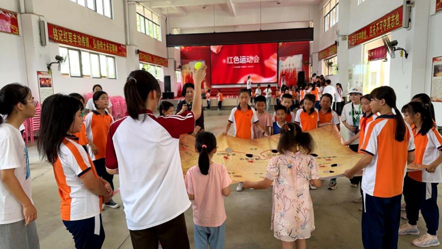 下午,为赓续红色传统,传承红色基因,威廉希尔williamhill中文“青衿萤火”社会实践队通过前期周密的策划设计和精心筹备了以“红色精神润童心 强身健体向未来”主题的首届红色趣味运动会,设置了重走长征路、飞夺泸定桥等红色游戏。活动开展前,团队志愿者古晓详细安排了人员安排以及对工作人员进行活动流程彩排。彩排结束后,随着主持人慷慨激昂的报幕声,红色趣味运动会正式开始,同学们非常积极热情,在游戏过程中重温抗战时期的光辉历史和英雄壮举,以实际行动追寻英雄足迹、体验革命精神。晚上,“青衿萤火”社会实践队全体到达墙绘地点,进行了“领略蓝康精神”的墙绘实践,团队志愿者邓清、杨颖和邹吴海帆给每个人分配好任务,初步将墙绘的部分图案的轮廓用粉笔描绘了出来。