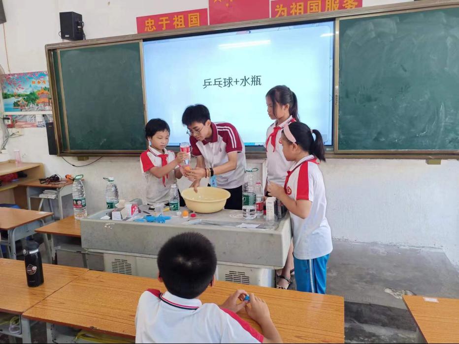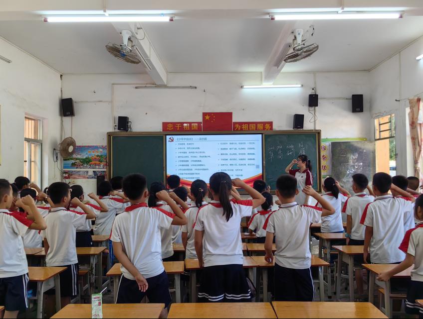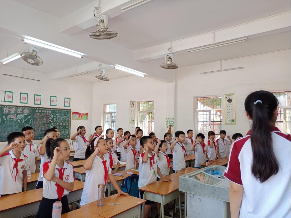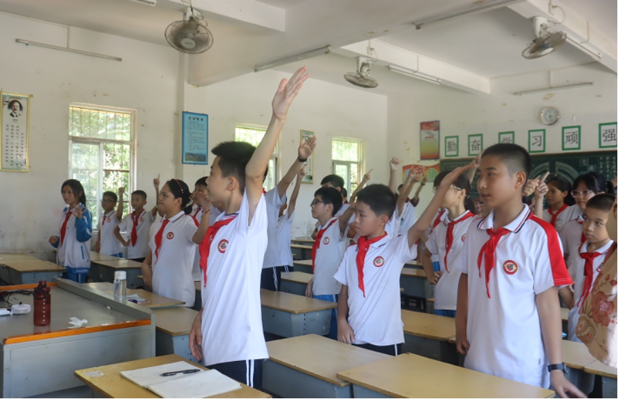 7月7日乘风“企”航三下乡实践队迎来了第二天的教学,这天的教学任务较之重些,因为我们除了要在三年级开展教学,还要迎接五年级学生的到来,实践队成员提前到了教室打扫清洁,做好迎接准备。早上,三年级朗朗的读书声响彻校园,引来了学校领导的夸赞,防溺水知识安全教育课跟急救知识课氛围浓厚,同学们都积极与老师互动。五年级班主任梁城殷先是就课堂纪律、教室卫生清洁等方面对学生做出了要求,接着各成员一如昨日依次上台向同学们介绍自己与所教科目,与学生的相处融洽。