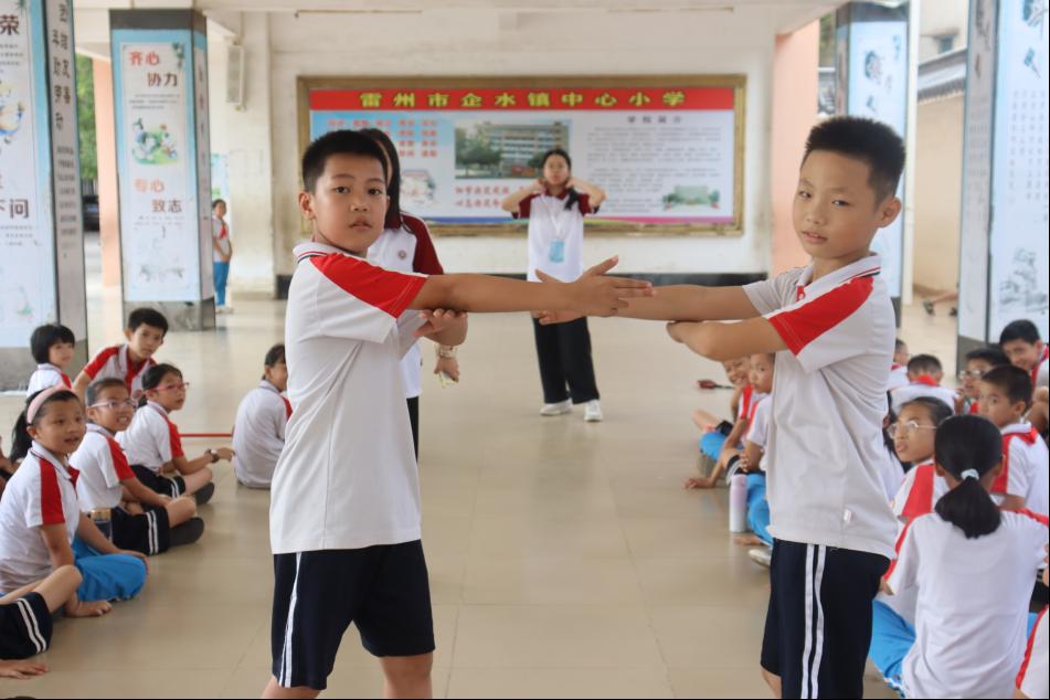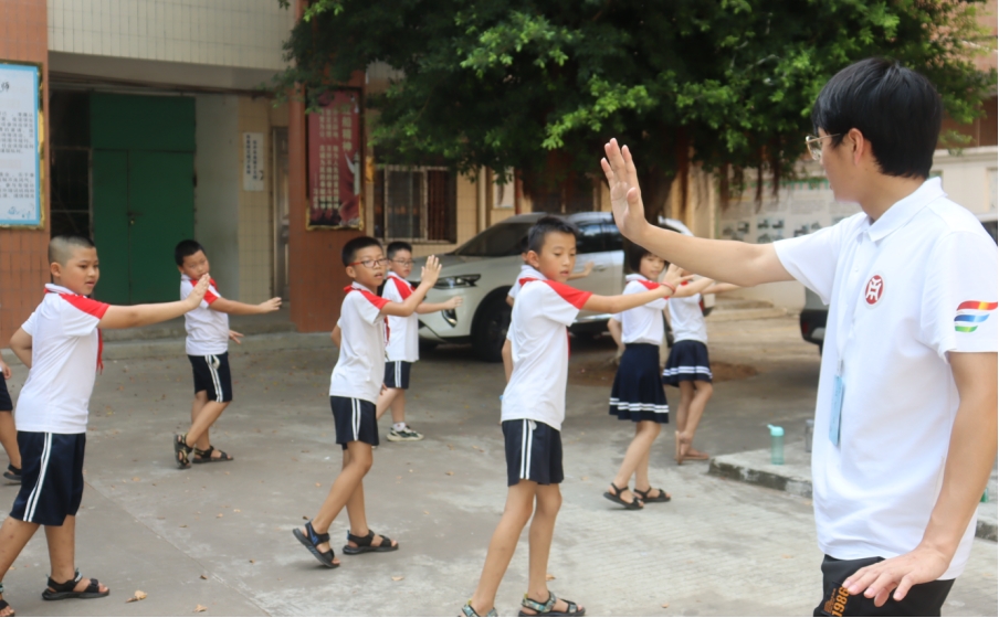 7月9日乘风“企”航三下乡实践队迎来了第四天的教学,五年级也迎来了手势舞课堂初体验,老师简文诗先是播放教学视频耐心激发同学们的学习兴趣,接着引领同学们跟着一起学习,最后全班同学都站起来合跳。小简老师的教学耐心且有趣,愉悦动人的歌曲、简单欢快的手势,也让学生们更加热爱和投入课堂。常言道:“信其师,亲其道。”小简老师的亲和力感染学生,也引发了其他科任老师的学习兴趣,课堂上,部分实践队成员站在教室后面跟着学习,惹来学生们的欢笑,老师们也积极与同学们交流学习,教室的学习氛围一度其乐融融。“用心耕耘,静等花开。”