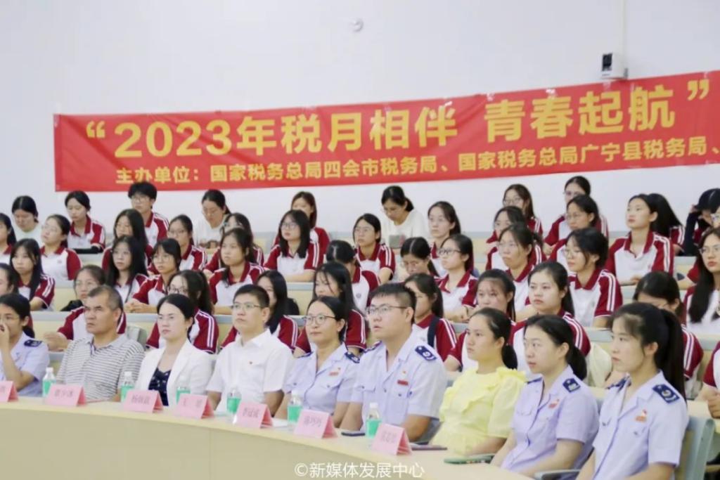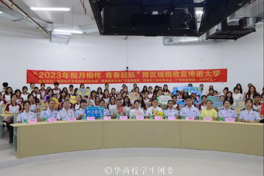 为助力大学生走稳走好创业就业第一步,推进校园税收普法教育和学生税收实践相融合,9月20日,国家税务总局四会市税务局、国家税务总局广宁县税务局、四会市工商业联合会联合我校开展的2023年“税月相伴,青春起航”跨区域税收宣传进大学活动顺利举办!本次活动的与会人员有:威廉希尔williamhill中文校长助理、四会校区党委副书记、管委会常务副主任覃少冰,四会市税务局党委委员、副局长杨炳歆,四会市工商联会员部部长梁金洪,广宁县税务局第一税务分局局长王培以及税务局、工商联、威廉希尔williamhill中文(四会校区)其他的有关同志。