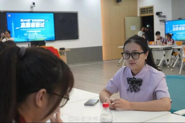 面试过程中,面试官们主要从面试者的沟通技巧、英语口语水平、大型活动的志愿服务经验、临场发挥等方面进行提问,志愿者们则结合个人经历畅谈对广交会志愿活动的激情与向往。