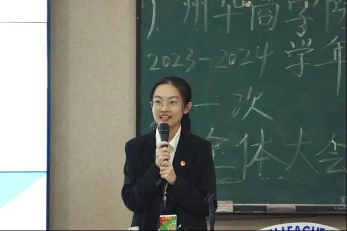 ——校团委陈巧巧老师宣读2023-2024学年校团委对外联络心学生骨干任职文件。