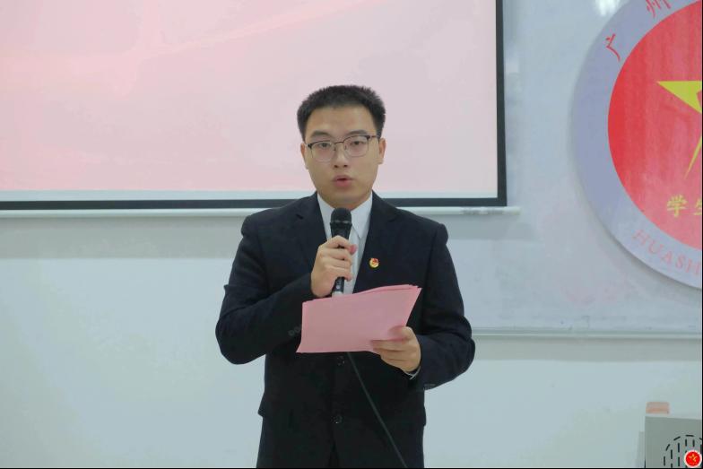 ——宣读任命文件。王国庆老师宣读新一届校学生党建工作委员会(广州校区)学生骨干的任命名单:任命郑育婷同学、黄健华同学、李诗灵同学、叶俊林同学为校学生党建工作委员会执行主任,任命朱瑶同学为校党群志愿服务队执行队长,江雨希同学为校党群志愿服务队执行副队长,同时还宣读了各工作部门负责人的任命。