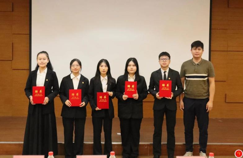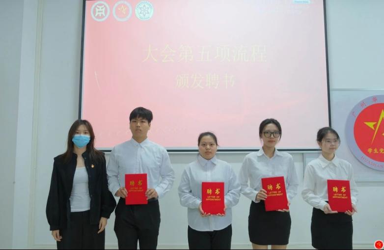 ——学生骨干表彰及颁发聘书。会上,王国庆老师、黄秋铭老师、类康老师、江庆基老师、李瑶老师为第十五届校学生党建工作委员会、第七届党群志愿服务队工作表现突出的学生骨干颁发优秀学生骨干荣誉证书,为执行委员会执行主席、部门主要负责人、部门负责人、学生骨干颁发聘任书。
