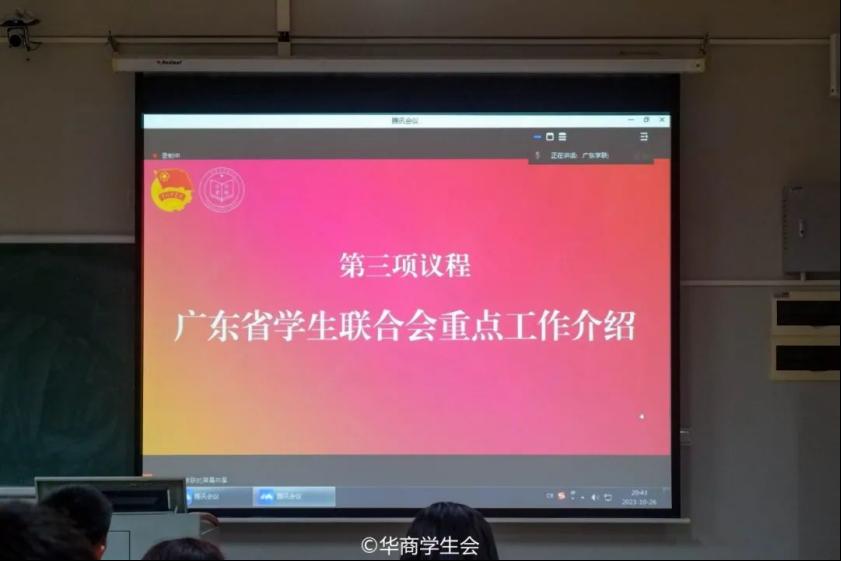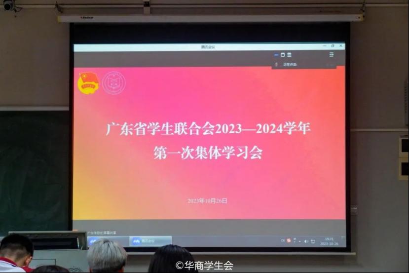 广东省学生联合会2023—2024学年第一次集体学习会(华商分会场)于2023年10月26日在广州校区启智楼303、肇庆校区6号楼202同步举行,校团委老师、二级学院学生会指导老师、校院两级学生会主席团成员参与本次会议。