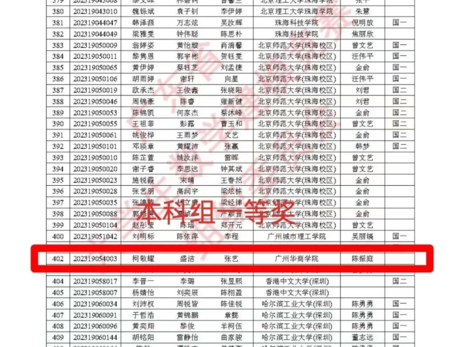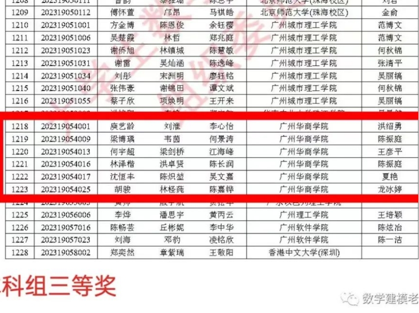 ——建模竞赛,为校争光。在2023年全国大学生数学建模竞赛广东省分赛中,我校优秀队伍从多支队伍中脱颖而出,荣获本科组一等奖有一组同学,多组同学获得了三等奖和优胜奖,参赛队伍有28支,有19支队伍获奖,获奖率高达67.8%。
