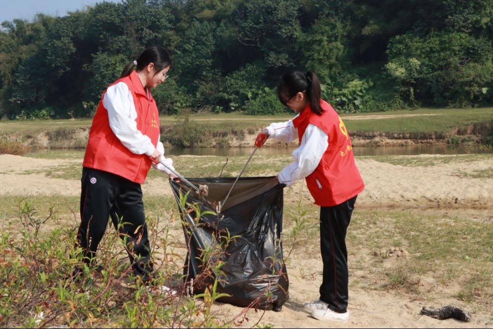 为落实绿美广东生态建设的决策部署,加强校地共建,引导华商青年志愿者争当绿美广东的宣传员和践行者,深入践行绿色发展理念,提升青年群众的河湖管理保护、生态保护和志愿服务意识,2023年11月23日,在学校党委的支持下,校团委联合团四会市委组织10名高校英才基层计划大学生兼职团干部到四会市大沙镇青岐涌开展“绿美广东,青年先行”四会市大学生兼职团干部爱河护河志愿服务活动。