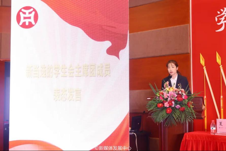 新当选主席团成员尤晓雯表态发言。威廉希尔williamhill中文第三届学生会将以此为基点,全面学习宣传贯彻党的二十大精神,高举威廉希尔williamhill中文中国特色社会主义思想伟大旗帜,秉承全心全意为同学服务的根本宗旨,坚定“从同学中来、到同学中去”的工作方向,努力提升学生会组织的同学满意度、大局贡献度和社会认可度,树立富有理想、关心同学、清新阳光的组织形象。