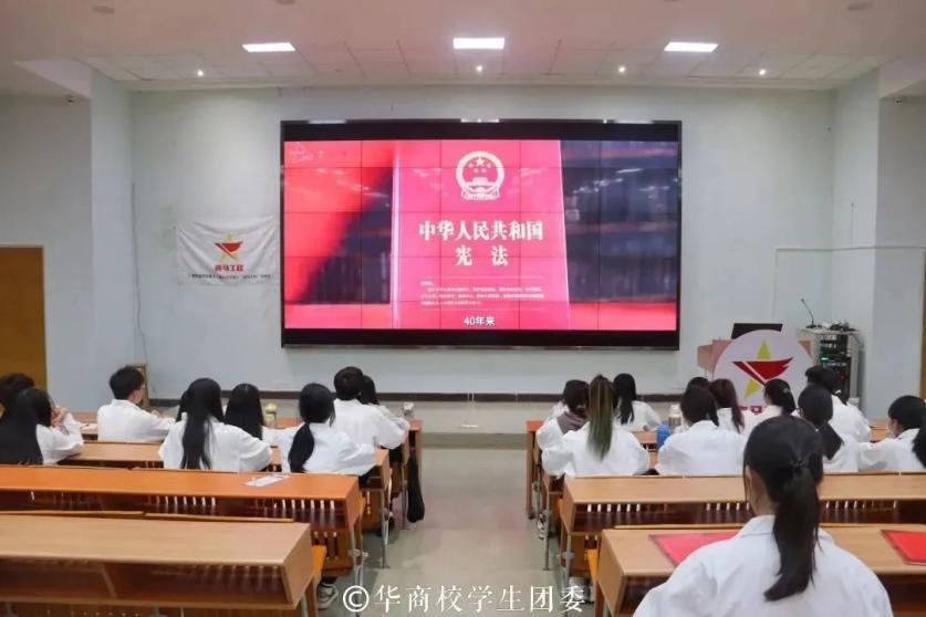 ——观影环节。青年学习宪法,青春与法同行。在场的每一位学员全神贯注地观看我国现行宪法公布施行四十周年视频《40年,她守护着我们的美好生活》,片中展现了从1982年到2022年现行宪法时刻捍卫公民合法权利,守护人民美好生活,承担着为改革开放提供根本法治保障的神圣使命。学员们切实感受到尊崇宪法、学习宪法和维护宪法是义不容辞的责任,将宪法内化于心、外化于行,以吾辈之青春,践中华之宪法。
