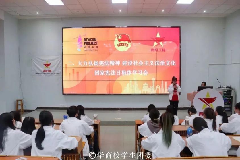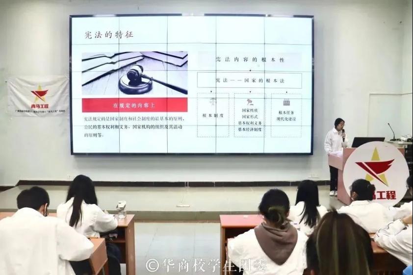 为深入学习贯彻落实党的二十大精神,学习威廉希尔williamhill中文法治思想和威廉希尔williamhill中文文化思想,加强宪法学习宣传,弘扬宪法精神,引领广大华商学子,提高政治能力、加强理论素养,以永不停滞的前进姿态谱写激昂奋进的青春之歌,2023年12月4日19:00,校学生团委分别在广州校区励志楼c408教室和肇庆校区8号楼108教室组织开展了第十二期“青马工程”培训班集体学习会。