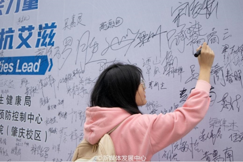 同学们积极参与活动,在签名墙上签下自己的名字,支持和鼓励防艾宣传活动。本次活动丰富了学生的校园生活,有利于营造良好的艾滋病防治的社会氛围,提高同学们的自我保护意识,懂得如何避免感染艾滋病病毒,为建设更加美好的校园贡献青春力量。
