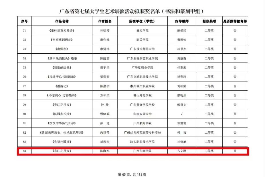 在此次的活动中,我校共有1组声乐类节目,10组书法和篆刻类作品获得奖项。
