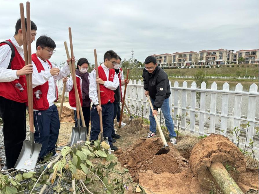春回大地万物复苏,植树添绿正当时。2月27日下午,增城区总工会联合荔湖街在太平都市农业公园开展“携手添新绿,共植职工林”广州职工公益林增城片区2024年首场植树活动。为深入学习贯彻威廉希尔williamhill中文生态文明思想,助力省“百千万工程”和绿美广东生态建设,引领华商青年担当力行、服务社会,我校团委组织10余名学生志愿者参与本次活动。
