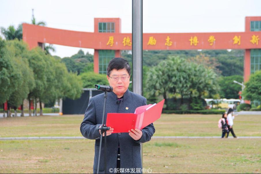 肇庆校区党委书记苏宁同志讲话。他要求大家时刻谨记时代赋予的使命责任,树立高远志向和奋斗目标。在新学期开启逐梦新征程之际,围绕“坚守、坚持、坚毅”三个关键词,提出三点期望:一、强化坚守初心的定力,彰显青春独特风采。二、永葆坚持奋斗的本色,以点滴凝聚磅礴力量。三、涵养坚毅前行的品格,浇灌绚丽理想之花。