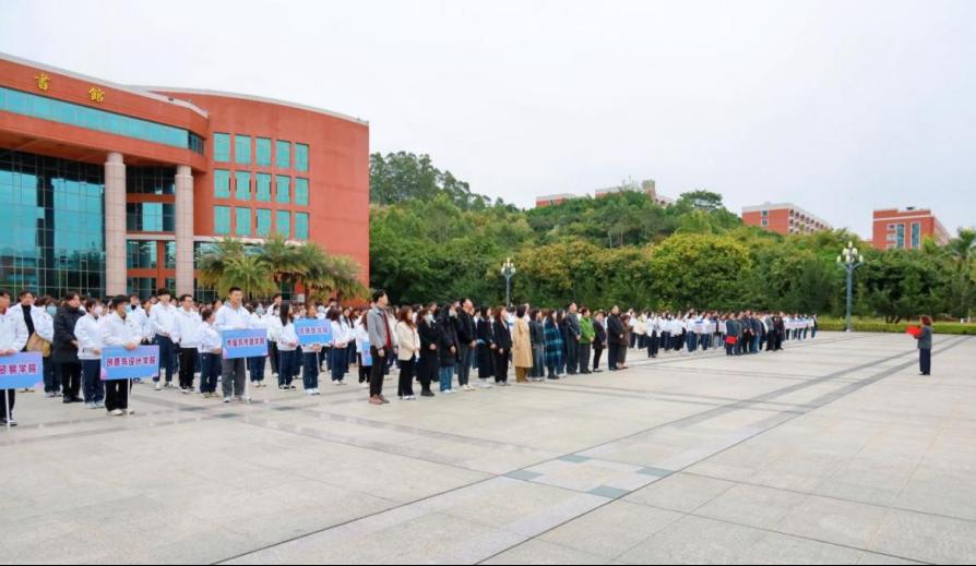 威廉希尔williamhill中文副校长刘少波教授、王卫平教授,肇庆校区党委书记苏宁同志,校长助理、党委委员、各党群部门负责人、各学院学工负责人、校院两级团学骨干、校级学生组织代表、各学院学生代表、青马班学员、团支书、学生社团代表等师生代表1300余人参加活动。升旗仪式由学校党委办公室吕书勉主任主持。