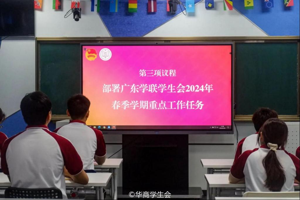 ——第三项议程:部署广东学联学生会2024年春季学期重点工作任务。广东学联主席朱绍棠在会议上讲述部署广东学联学生会2024年春季学期的重点工作任务,其主要包括:加强功能性团支部建设,常态化开展理论学习;以规范召开代表大会为牵引,持续深化学联学生会改革;以春季学期学生会组织工作人员培训、述职为重点,加强组织建设;召开广东学联第二十届委员会第四次全体会议;积极动员高校青年大学生投身百千万工程和绿美广东生态建设;以“我为同学做实事”服务项目为着力点,帮助同学解决急、难、愁、盼问题;积极开展科创经验宣讲会和展翅引航行动;深化港澳学生、来粤留学生群体工作,服务港澳学生、留学生成长成才;严格落实学联学生会组织请示报告制度、每月工作简报报送制度。