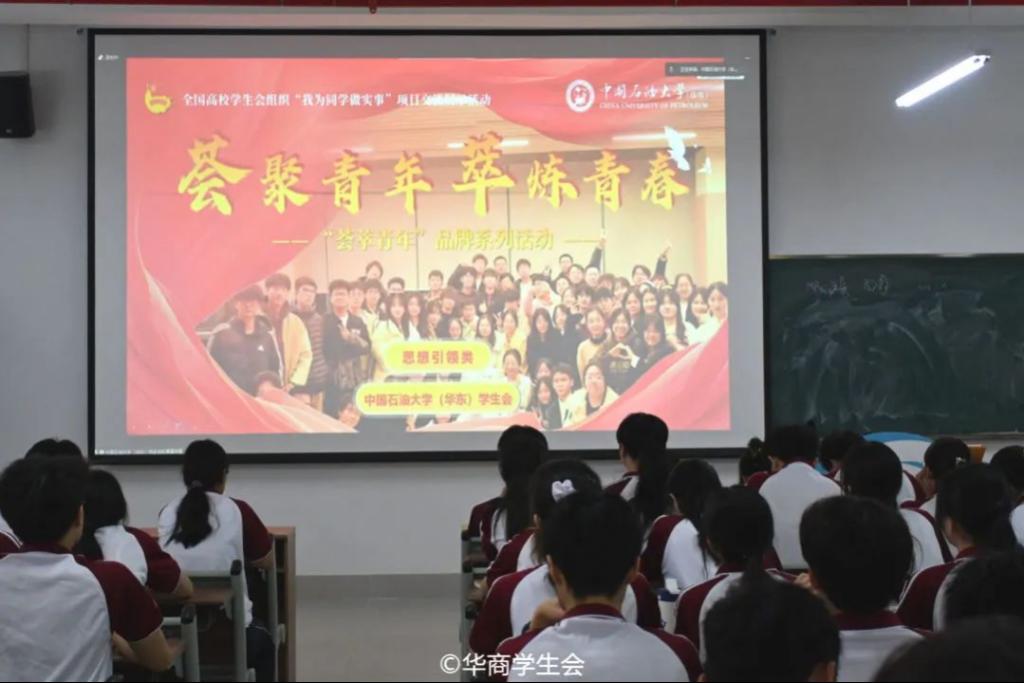 ——第二项议程:“我为同学做实事”精品,服务项目经验分享交流。中国石油大学(华东)学生会介绍“荟萃青年”品牌系列活动,以“学、说、做”三部曲为基础,荟萃青年群体,展现青年力量。