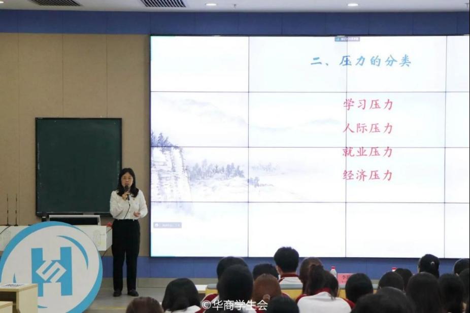 紧接着,李娇娇老师从什么是压力的基本概念展开讲解,从压力的意义与分类两大方面详细地介绍,让同学们更加深入地了解压力的概念和压力的类别。并且通过一系列生动的举例说明,引导大家正确看待并释放压力。