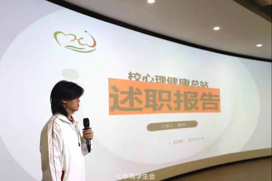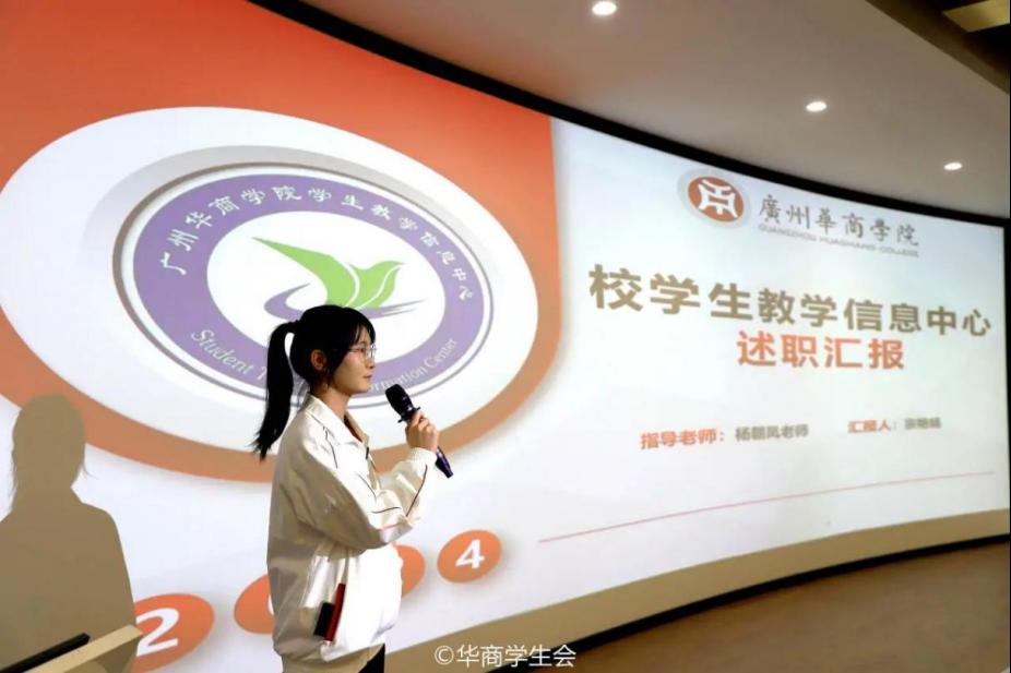 ——教学信息中心。教学信息中心分别从工作回顾、经验总结以及工作计划三个板块展开述职报告。在上一学期,教学信息中心及时了解学生对教学方面的意见,建立学生信息反馈系统,为同学们维护自身权益开辟了新的方式,进一步提高教学质量和学生对学校的认同感,为同学们创造更加便捷、和谐的校园生活。
