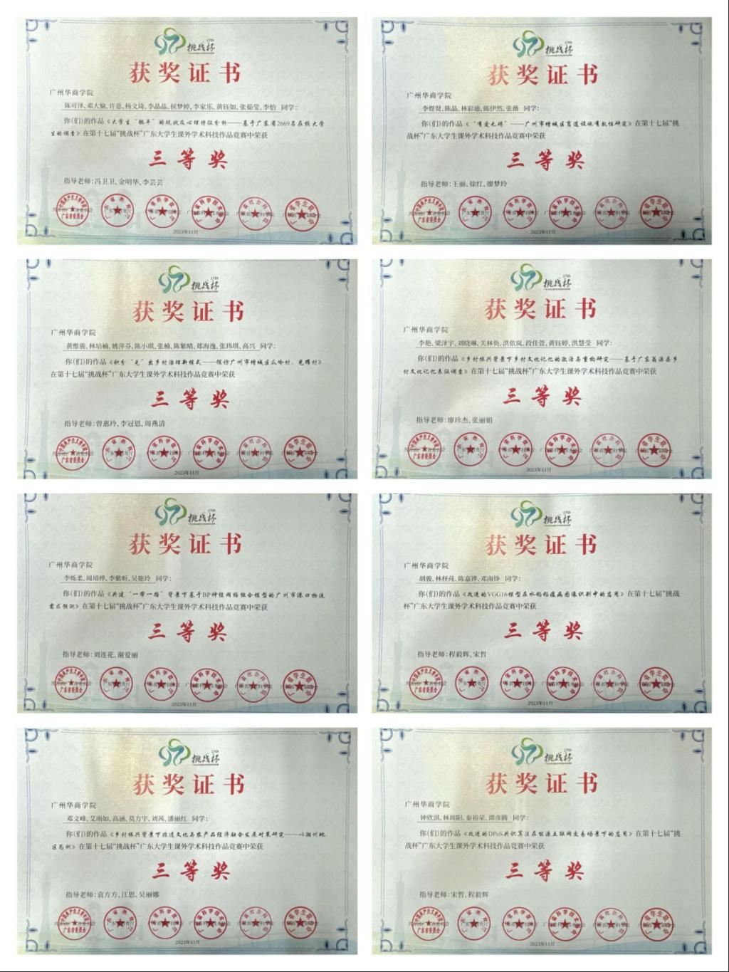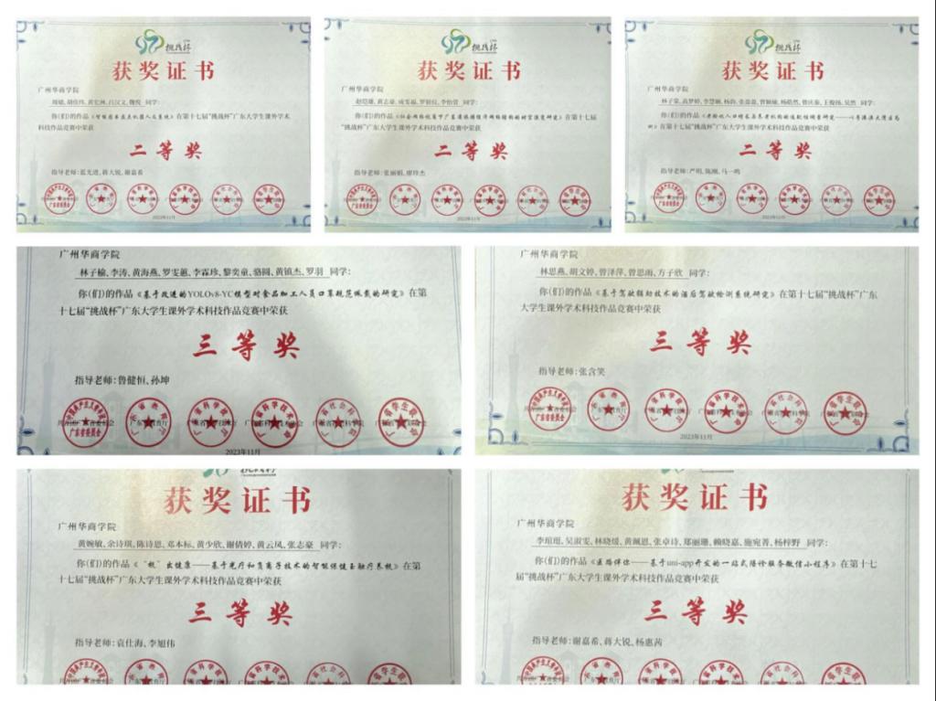——第十七届“挑战杯”广东大学生课外学术科技作品竞赛获奖证书下发。第十七届“挑战杯·王老吉”广东大学生课外学术科技作品竞赛,全省156所高校省校两级参赛人数超17万人。全省135所高校的808件作品在终审决赛中同台竞技。其中,我校推荐的参赛作品中,3个作品荣获二等奖,12个作品荣获三等奖。