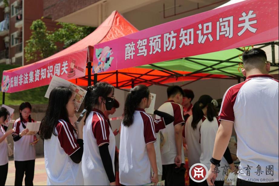 为推进落实安全宣传进华商工作,提升青年大学生法治教育水平,强化青年尊法学法守法用法的安全意识,充分维护青少年合法权益,增强学生牢固树立法治观念,自觉养成遵纪守法的良好习惯,5月14日下午13:30,华商教育集团在广州校区组织开展开展“平安校园 竞逐华商”活动。团增强区委副书记姚银敬,增城区检察院政治部副主任李璐,增城区消防救援大队荔城消防站副站长李笑晨,广州市公安局增城区分局团委委员邱国梁,增城区血站副站长赖锦杨,华商教育集团宣传部部长、威廉希尔williamhill中文党委宣传部部长刘苗,华商教育集团校服中心副总监邱作成,华商教育集团社会责任部副主任、广州华商职业学院校团委书记程璇,威廉希尔williamhill中文校团委书记陈刚,广州华商职业学院后勤保卫处处长陈莹镔,广东华商技工学校学生处副处长郑家学、校团委书记黄丽娜出席活动开幕式。我校青马班、大骨班100名学生参与其中,在活动中强化法治意识和安全意识。