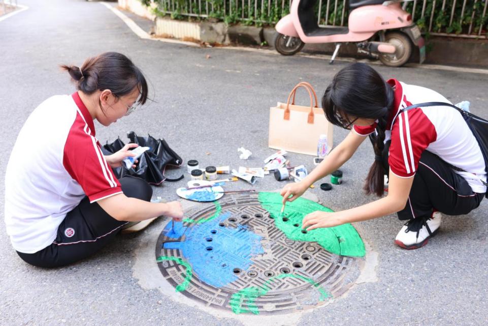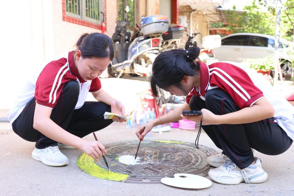 艺术之彩赋能和美乡村建设,“绘”出乡村振兴新画卷。实践队队员们热情高涨,拿起画笔,以梦为风景,以心绘色彩。描绘对美好生活的向往和追求。他们不畏辛劳,克服高温天气影响,坚持在井盖上作画。这些画作展现了华商青年的艺术表现力和想象力,更传递出了他们对和美乡村的向往和追求。经过队员们的巧手装扮,村中的井盖变成一道道“高颜值”文化景观。