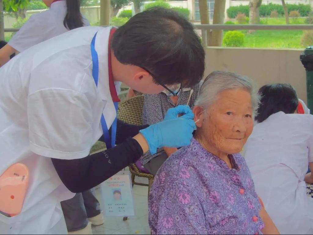 通过对每一位老人进行询问和检查,队员们发现老人们普遍存在睡眠不佳、耳鸣、高血压等健康问题。经过研究,队员们决定通过传统中医疗法贴耳穴,为村民缓解常见病症。贴耳穴是中医的一种独特疗法,团队成员在长者耳朵上贴上相应穴位的“王不留行籽”,并适当按压和揉捏,达到防病治病的效果。当地长者们体验到贴耳穴带来的舒适与改善,更增强对中医保健的认识。