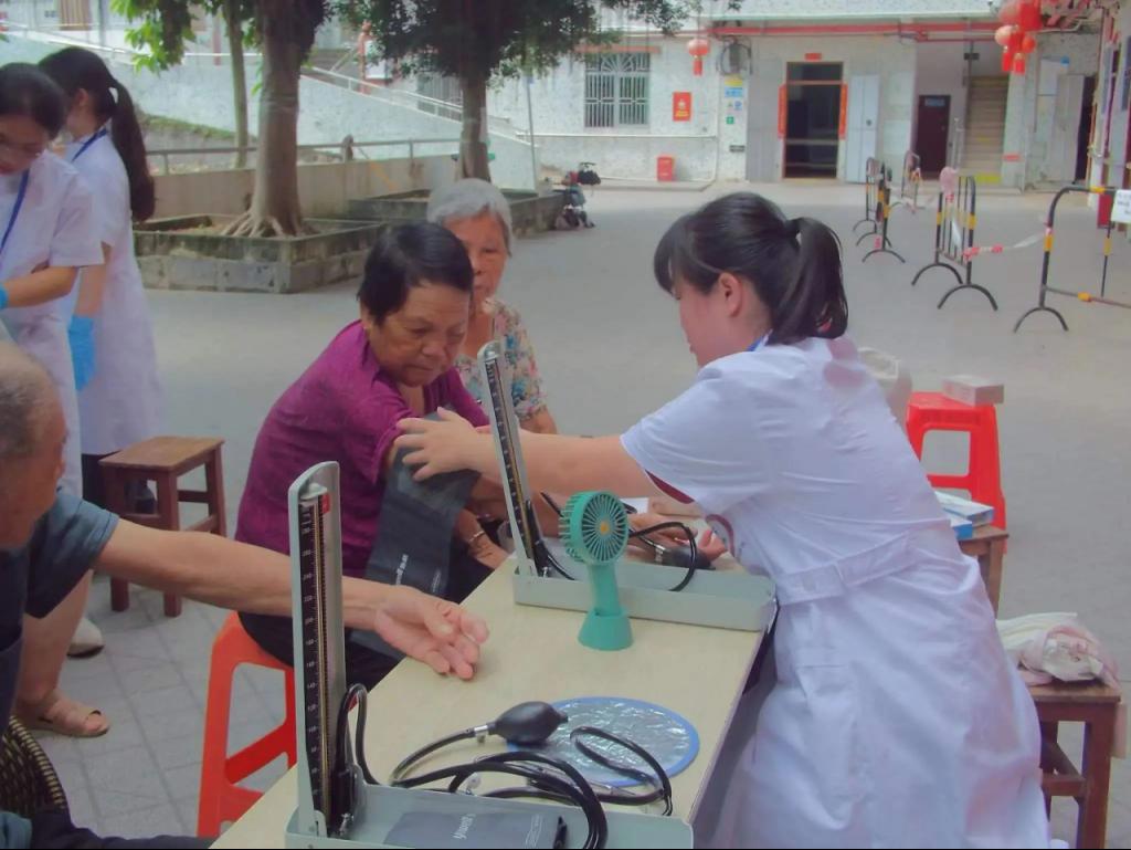 为让爱心健康医疗服务惠及乡村,队员们为当地长者提供血压测量服务。通过精准的血压测量,帮助长者们了解自身血压状况提供帮助。队员们使用专业的血压计,为长者仔细测量血压,同时针对白花镇敬老院部分长者血压偏高的情况,提出及时就医、清淡饮食、适度运动、戒烟戒酒、规律作息等相关建议。